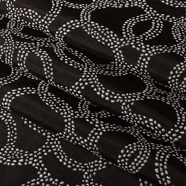 Bella-Dura® Hansel Black/White is an abstract geometric pattern consisting of white circles on a black background. Manufactured by Wearbest Sil-Tex Mills, every Bella-Dura fabric is made with 100% Bella-Dura polyolefin. This material provides revolutionary performance against stains, mold/mildew, abrasion and fading while remaining fully recyclable. Bella-Dura’s unique 100% polyolefin blend creates a soft and sleek fabric without compromising comfort for extreme durability.