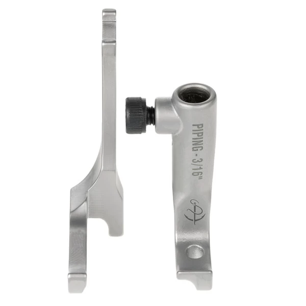 This 3/16-inch cording foot set is engineered to take curves perfectly without getting stuck or walking over the cording. This set is recommended for sewing firm piping with a 3/16-inch diameter or smaller. It’s a great choice for projects using our 5/32-inch diameter piping in particular. Set includes both the inside and outside feet.