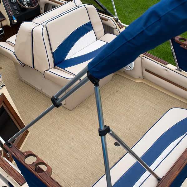 Infinity Luxury Woven Vinyl Flooring has a Compact Cushion (CC) backing that makes it ideal for area rugs, snap-down and glued-down installations. For snap-in mats, bind the edges of the vinyl flooring with a 1-1/4-inch binding and use snap fasteners to secure to the boat floor. We recommend using DOT® brand SnapRite® fasteners for strength and ease of installation. To use as boat deck flooring, Infinity Luxury Woven Vinyl can be glued to the deck using a solvent-free, latex resin adhesive that works with vinyl. Infinity recommends using AAT-390 Marine & Exterior Adhesive for glue-down applications. Edges don’t need to be bound when glued, because the flooring typically runs under built-in furniture or seating.