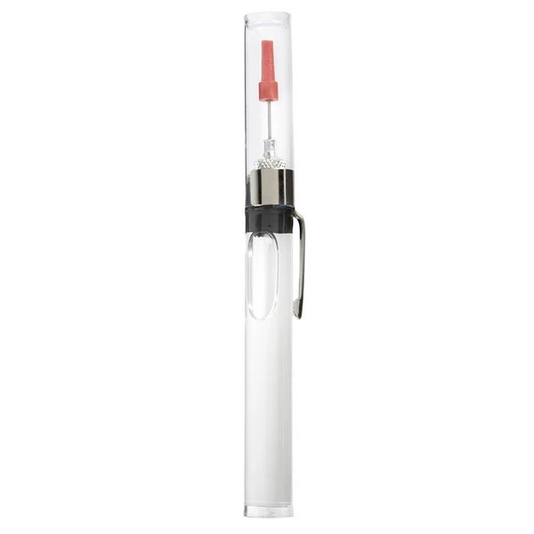 A precision needle point oiler with excellent-quality sewing machine oil for any sewing machine! The fine metal tip is great for accessing hard-to-reach places on your machine that need extra lubrication. It’s ergonomic and easy to store. This great accessory can even be kept inside our Industrial Carrying Case (#120162) in the right side storage compartment.