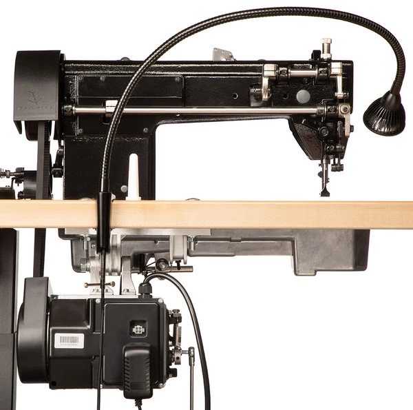 Take your sewing to the next level! This Fabricator package comes with some impressive additions for a superior sewing setup. The machine head and oil tray sit in a custom maple butcher block table for a craftsman-inspired look. The gorgeous maple tabletop is custom made for Sailrite in the USA. The black, powder-coated table legs are made from a high-quality steel and are designed for easy height adjustments. Every sewist needs a convenient space for storing notions, which is why we’ve included cutouts on the tabletop for storing bobbins and other notions within easy reach. To top it all off, we’ve included the Sailrite® Industrial Flexible LED Sewing Machine Light for optimal sewing visibility. This sturdy, sleek light has a flexible 26-inch neck so you can position it exactly where you need it. With five watts of power and a lifespan of 50,000 hours, you will have a bright, concentrated beam of light in hard-to-see places. With a strong G-clamp base, this light is easy to install on your work surface and will hold strong. Assembly of the table is required.