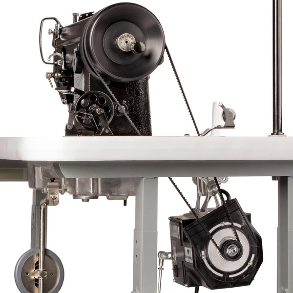 Powering the Fabricator is the Sailrite Workhorse® Servo Motor, a 550 watt, 3/4 horsepower motor, that provides a fluid motor to machine power transfer. The Workhorse features fully adjustable speed settings—you can set your top stitching speed and maintain variable speed control. It also runs quietly and is both energy-saving and durable. The Workhorse is used in conjunction with a cogged timing belt and our oversized Stitch PRO Balance Wheel. This arrangement is the first of its kind with a servo motor and provides maximum power while maintaining slow-speed sewing control. The combination of the oversized Stitch PRO Balance Wheel and single belt acts as an integrated speed reducer.