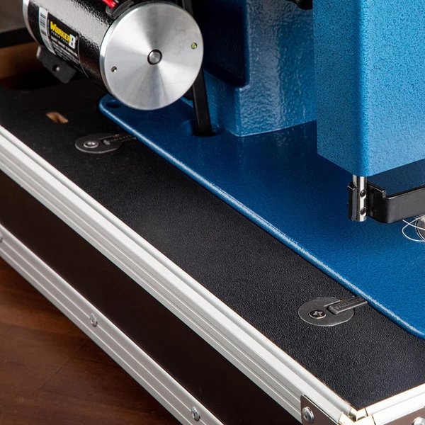 With these new hinge pins, you simply install the pins into the back of the Ultrafeed and drop the machine straight down into the portable case/wooden base or the cutout in the Ultrafeed table stand. This improved hinge design makes it much easier to transfer your machine from its portable setup to the table stand. Installation instructions are included.