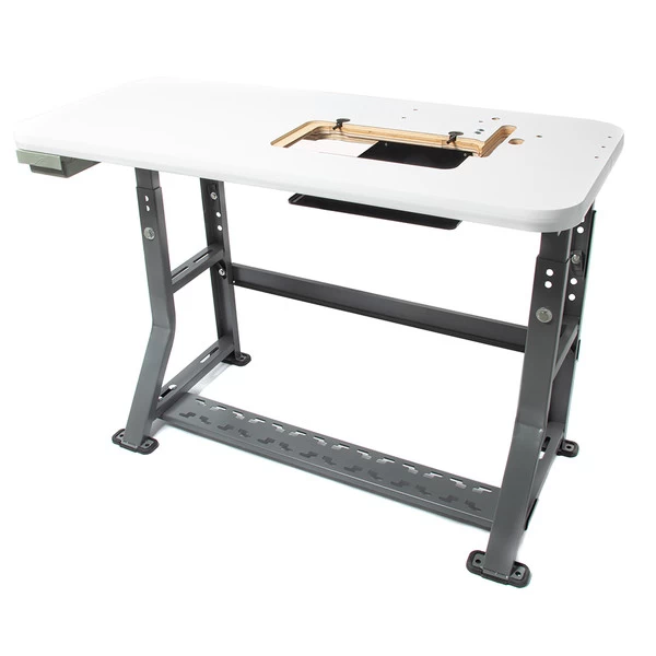 The industrial table offers more workspace for your Ultrafeed, allowing you to have more control and more comfort when sewing large projects. Just drop your machine into the cutout. When you need to take your machine with you, just pop it out of the table and put it back in its carrying case. Having more room to work will bring added convenience and productivity to your sewing routine.