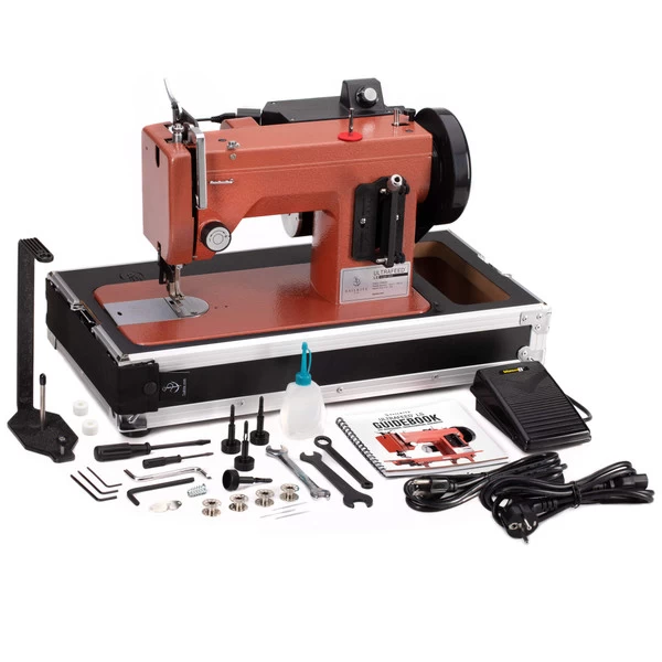 The Ultrafeed sews home thread up to V-92 weight and sizes #10-#22 needles.