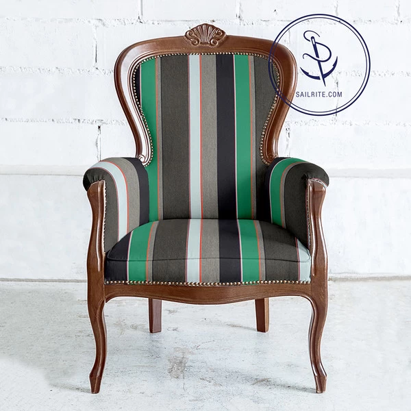 Sunbrella® Expand is a classic pattern with both large and small stripes to create variety and dimension. Expand Prep showcases rich green, orange, purple, gray and light blue stripes of various sizes. As part of the Dimension Collection, Sunbrella Expand is a great choice for inside your home as cushions, upholstery, throw pillows and other decorative accents. On the patio, this fabric is perfect for cushions and pillows. You can even use this fabric for RV and marine curtains, cushions and upholstery.