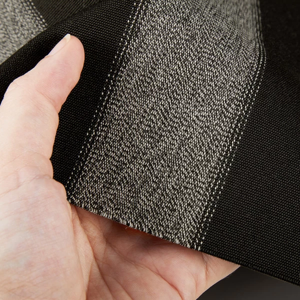 Sunbrella® Centered Onyx is a solution-dyed indoor/outdoor striped upholstery fabric in a classic color combination. The hazy, blurred edges offer an interesting twist on this bold striped pattern.