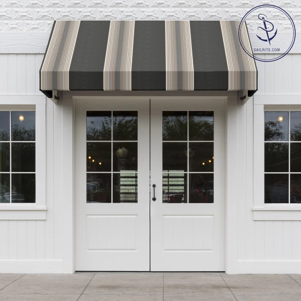 Sunbrella® Awning Stripe 4836-0000 Tillman Shale Fabric is a solution-dyed acrylic from Glen Raven’s Sunbrella Awning Stripes collection. This fabric features a wide beige-to-grey ombre stripe nestled between wide black background stripes, all flowing up the roll. The popularity of Sunbrella stems from its fantastic color options, high resistance to fading and long lifespan. Sunbrella is a soft, breathable, solution-dyed acrylic that is UV, water and mildew resistant and does not noticeably shrink or stretch. Sailrite is proud to carry the best in solution-dyed acrylic outdoor fabric!