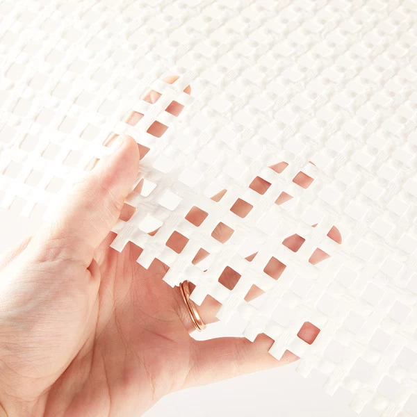 Trampoline Mesh Super 30oz White is a very strong, durable heavyweight vinyl-coated woven polyester material intended for really big catamaran trampolines. Super Tramp has very good UV resistance and sheds water well.
